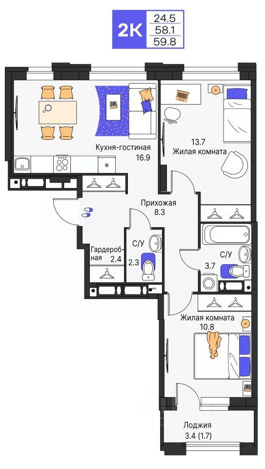 Продается 2- комнатная квартира 189 Выгода на квартиры в ЖК Моменты до 500 000 руб*