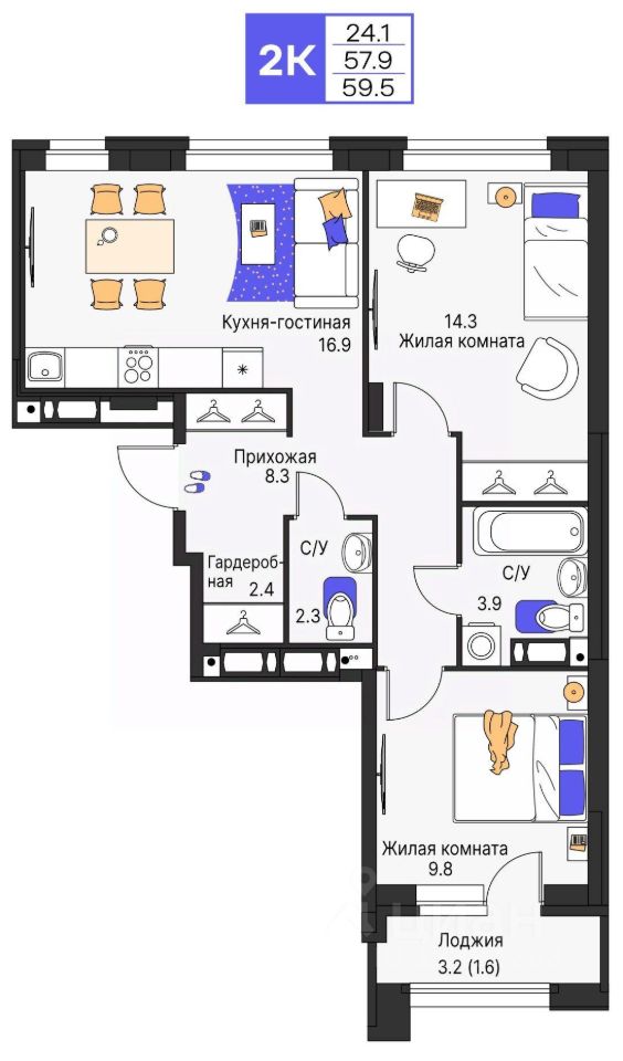 Продается 2- комнатная квартира 224 Выгода на квартиры в ЖК Моменты до 500 000 руб*