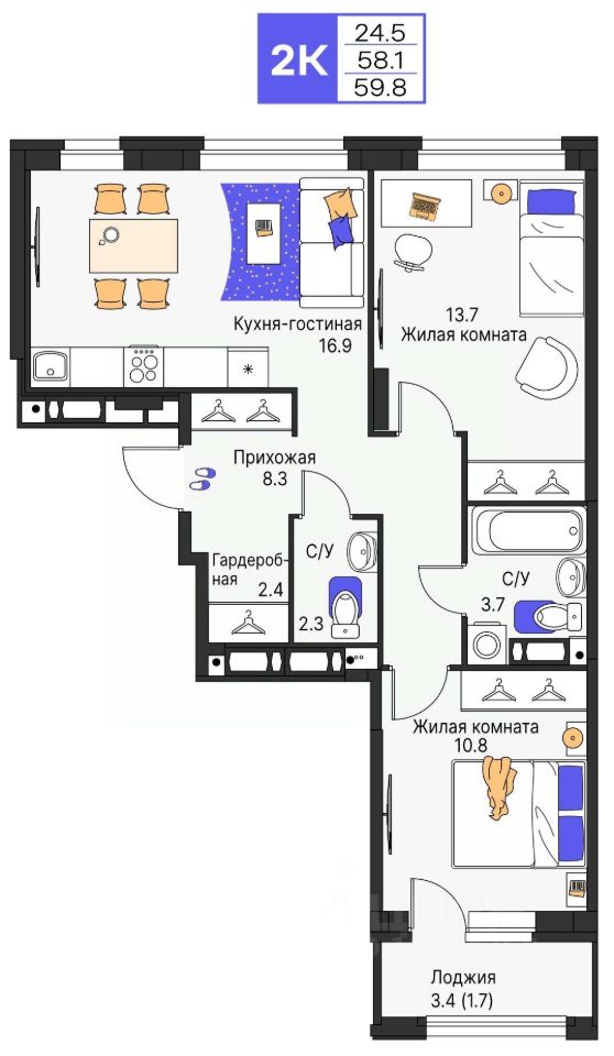 Продается 2- комнатная квартира 193 Выгода на квартиры в ЖК Моменты до 500 000 руб*