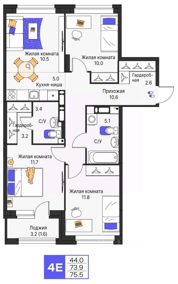 Продается 4- комнатная квартира 231 Выгода на квартиры в ЖК Моменты до 500 000 руб*