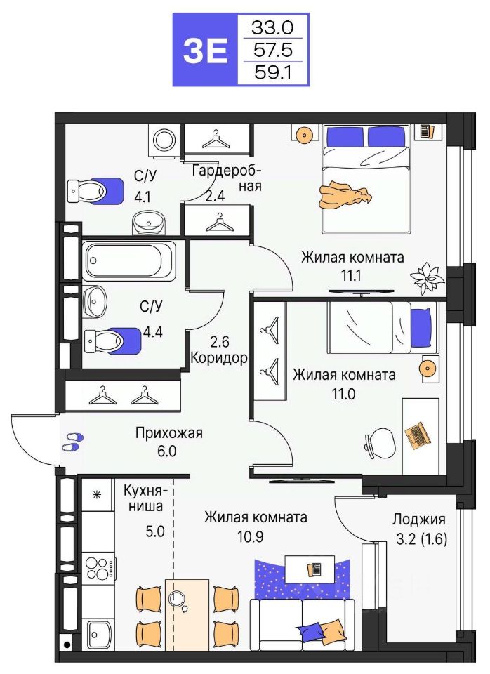 Продается 3- комнатная квартира 528 Выгода на квартиры в ЖК Моменты до 500 000 руб*