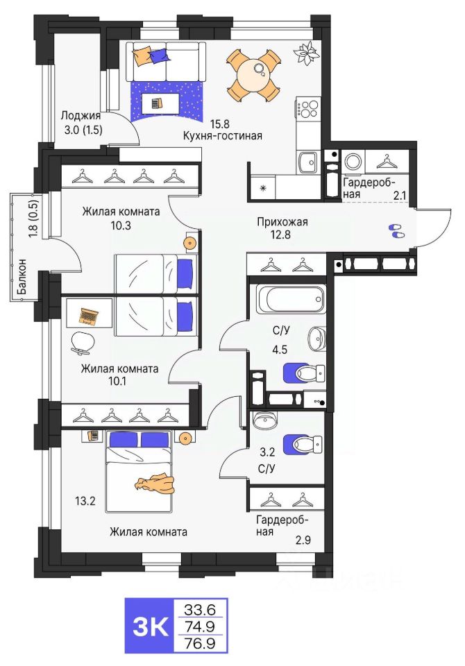 Продается 3- комнатная квартира 188 Выгода на квартиры в ЖК Моменты до 500 000 руб*
