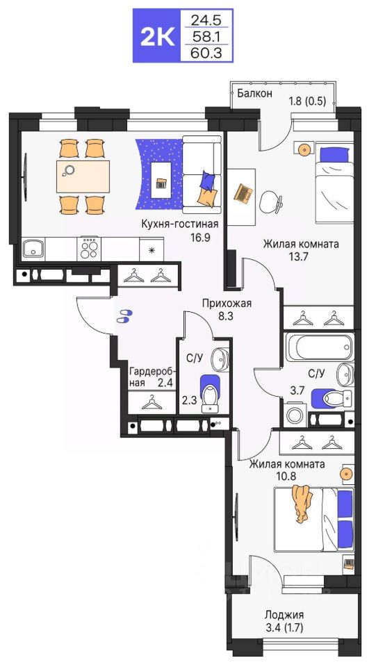 Продается 2- комнатная квартира 185 Выгода на квартиры в ЖК Моменты до 500 000 руб*