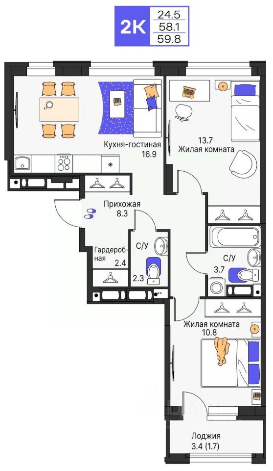 Продается 2- комнатная квартира 197 Выгода на квартиры в ЖК Моменты до 500 000 руб*