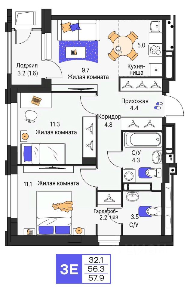Продается 3- комнатная квартира 405 Выгода на квартиры в ЖК Моменты до 500 000 руб*