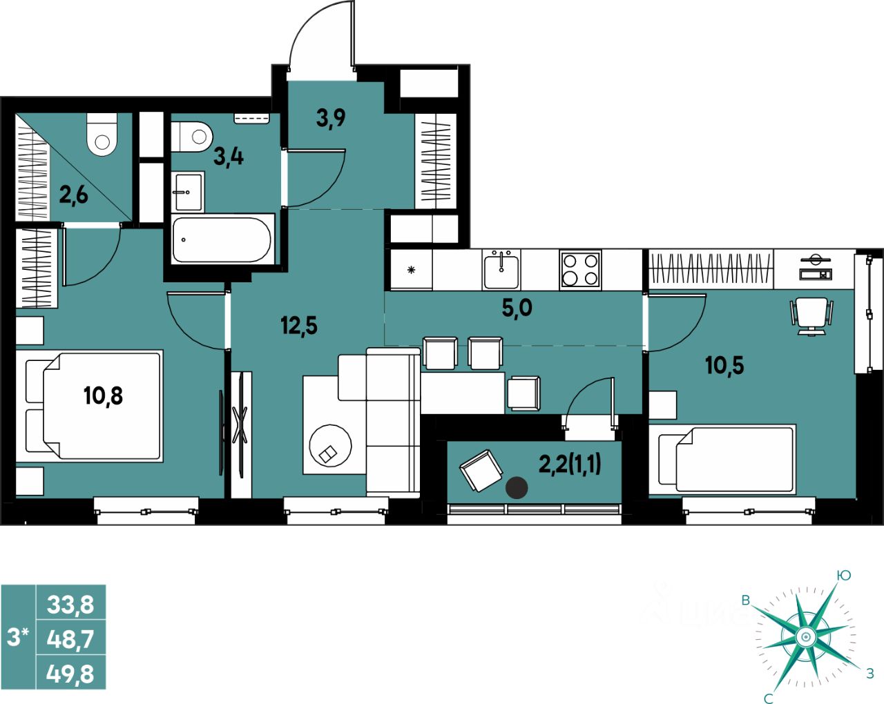 Продаётся 3-комнатная квартира в строящемся доме (Улановой, 5), срок сдачи: III-кв. 2027, общей площадью 49.8 кв.м., на 3 этаже. Новый жилой комплекс ''Клубный пригород ''МЫ'' от застройщика ''Девелопмент-ЮГ'' расположен по адресу д. Кондратово, пр-т Дягилева, 4.