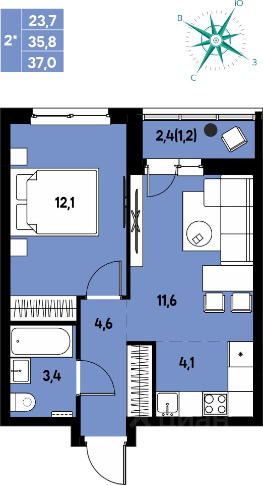 Продаётся 2-комнатная квартира в строящемся доме (Улановой, 5), срок сдачи: III-кв. 2027, общей площадью 37 кв.м., на 8 этаже. Новый жилой комплекс ''Клубный пригород ''МЫ'' от застройщика ''Девелопмент-ЮГ'' расположен по адресу д. Кондратово, пр-т Дягилева, 4.