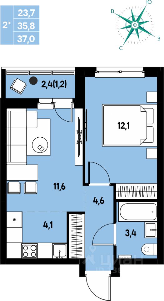 Продаётся 2-комнатная квартира в строящемся доме (Улановой, 5), срок сдачи: III-кв. 2027, общей площадью 37 кв.м., на 7 этаже. Новый жилой комплекс ''Клубный пригород ''МЫ'' от застройщика ''Девелопмент-ЮГ'' расположен по адресу д. Кондратово, пр-т Дягилева, 4.